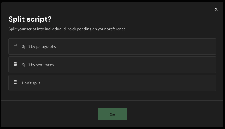 - Click Render by paragraph, and each paragraph of your script will be converted into a distinct clip. You can render up to 48 paragraphs simultaneously.